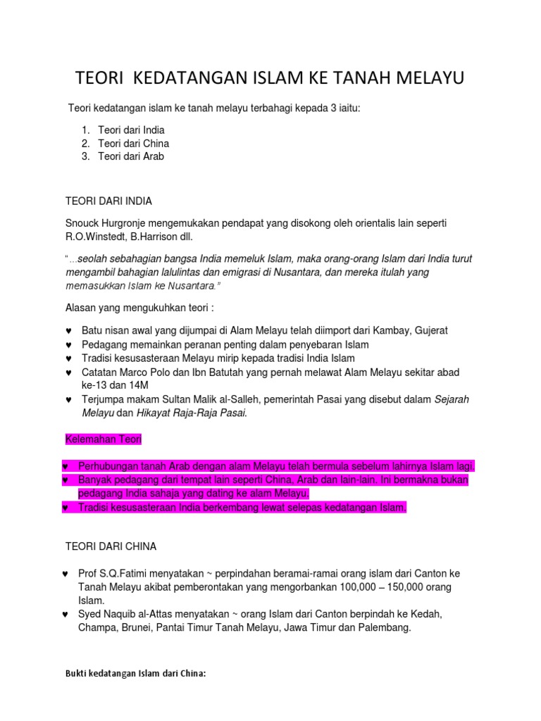 Related : Bukti Kedatangan Islam Ke Tanah Melayu / Teori kedatangan islam dari tanah arab..